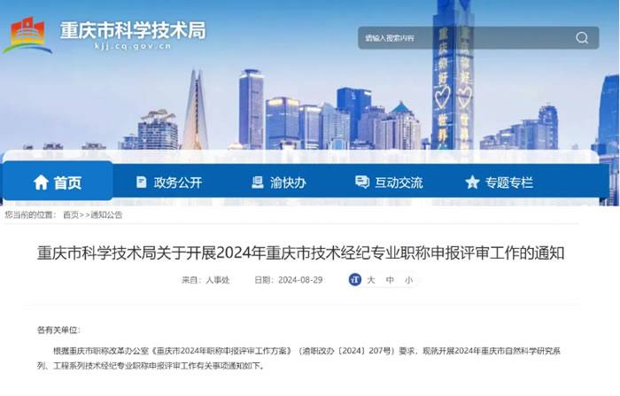 申報 | 重慶市科學技術(shù)局關(guān)于開展2024年重慶市技術(shù)經(jīng)紀專業(yè)職稱申報評審工作的通知