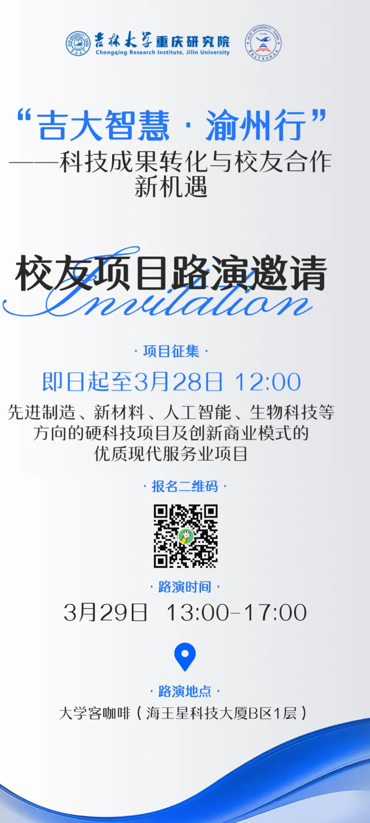 本次路演旨在搭建吉林大學(xué)與重慶校友、社會各界的合作橋梁,促進高校科研成果落地轉(zhuǎn)化,加強校友間交流互動,實現(xiàn)資源共享、優(yōu)勢互補,推動重慶地區(qū)產(chǎn)業(yè)發(fā)展與校友事業(yè)共同進步。