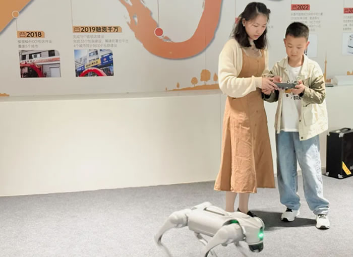 在吉林大學重慶研究院的機器人實驗室里,兩只憨態可掬的“科技狗”成了孩子們眼中的明星!孩子們圍著這只智能機器狗興奮不已,蹲下來仔細觀察它的機械結構,甚至嘗試用手機編程指令讓它做出指定動作。在研究院老師的指導下,大家不僅學會了基礎編程邏輯,更在歡聲笑語中感受到人工智能在未來的無限可能。