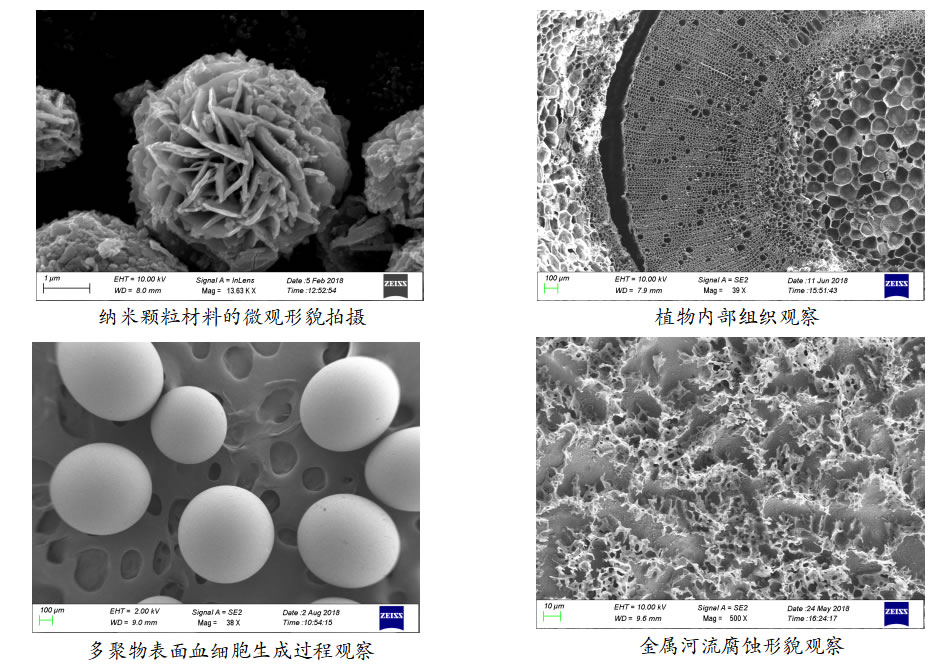 SEM的應(yīng)用:探頭接收激發(fā)的二次電子、俄歇電子、背散射電子,可將微觀物體放大至十幾萬(wàn)倍,觀察其由微米至納米級(jí)別的形貌。