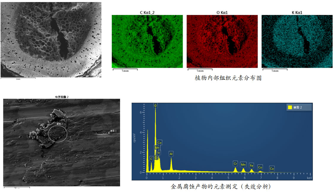 工作原理:利用電子和物質(zhì)的相互作用,可以獲取被測(cè)樣品的形貌、物相組成、元素的分布及相對(duì)含量。